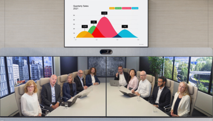 Cisco Webex Room 70D/Room 70S、Webex Room 55D/Room55、Room Kit EQX一体化高清智能会议终端 集成双屏70英寸/单屏幕70英寸、双屏幕55英寸/单屏幕55英寸 为小型、中型和大型高端视频协作会议室提供更智能、易用的会议体验 具备4K高清画面显示、智能语音跟踪,最佳取景,智能唤醒、有线/无线数据共享、与会者人数统计等AI功能。