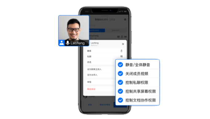 支持设置联席主持人,一键管理成员音视频权限、协作权限,维持会场秩序