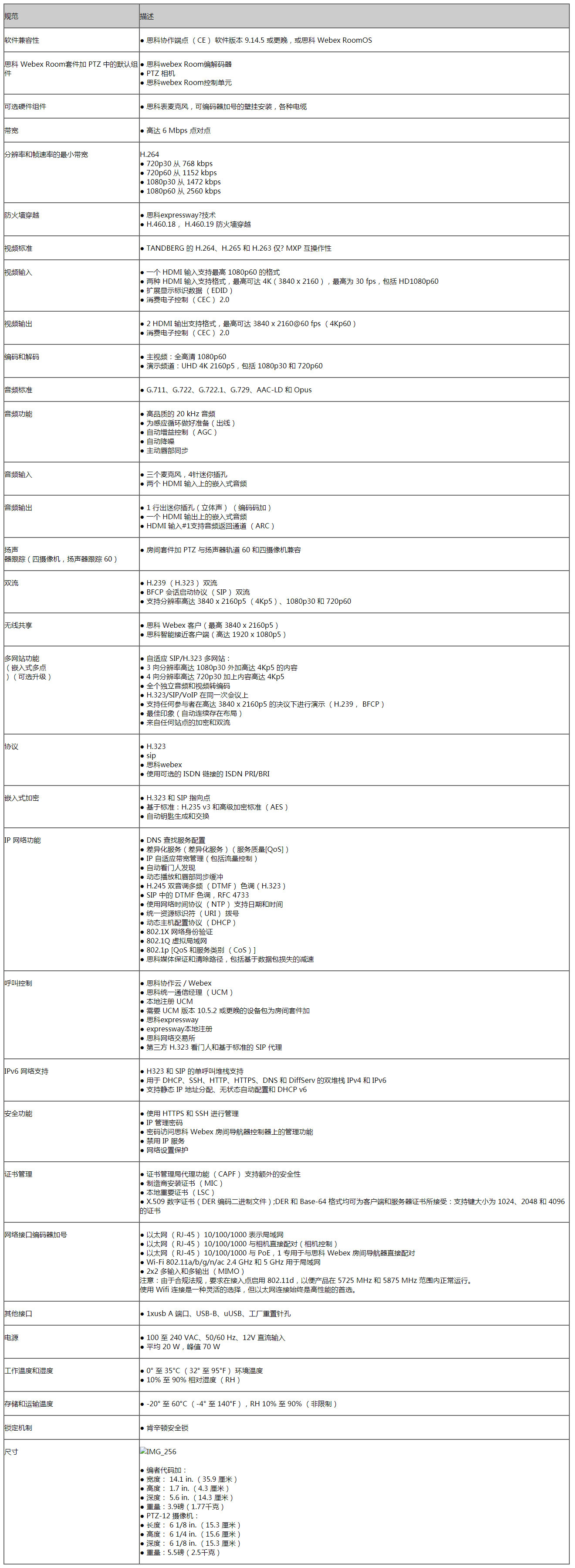 思科 WebexRoom套件 Plus PTZ(泛倾斜缩放)集成器套件是一个强大的协作解决方案,可与平板显示器集成,为您的协作空间带来更多智能和多功能性。此包结合了思科 Webex Room套件加编码器 (Codec Plus) 的性能以及泛倾斜变焦相机的灵活性,以便在需要特殊相机放置、对象特写或宽平移变焦功能的情况下提供最大的灵活性。