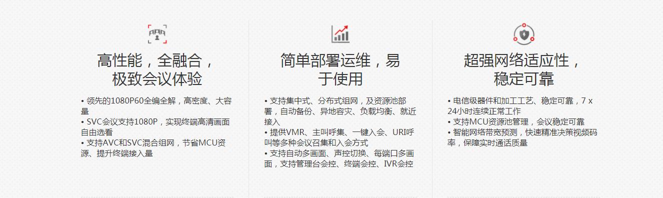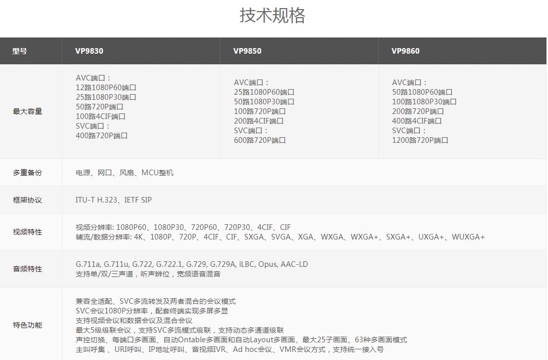 华为VP9800系列MCU是新一代大容量、高性价比、可灵活分配端口、平滑扩容的全融合MCU,采用新一代高清编解码器H.265 SCC实现最高4K分辨率的数据会议,天然融合视频、音频、辅流、数据,提供无缝的沟通协作能力。