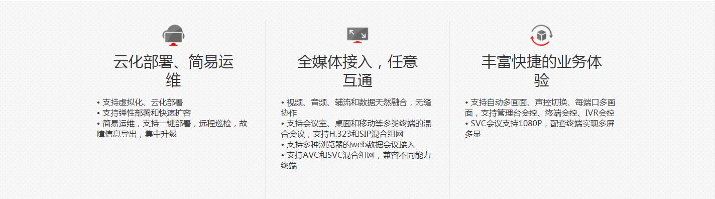 华为CloudMCU是为面向云化需求而推出的功能强大的企业云通信融合媒体平台。融合视频、音频和数据等多种媒体内容,接入从会议室到个人PC、手机等设备,实现统一无缝的沟通协作。CloudMCU支持虚拟化、云化部署,集中管控会议资源,满足各类企业和服务提供商的云化需求。