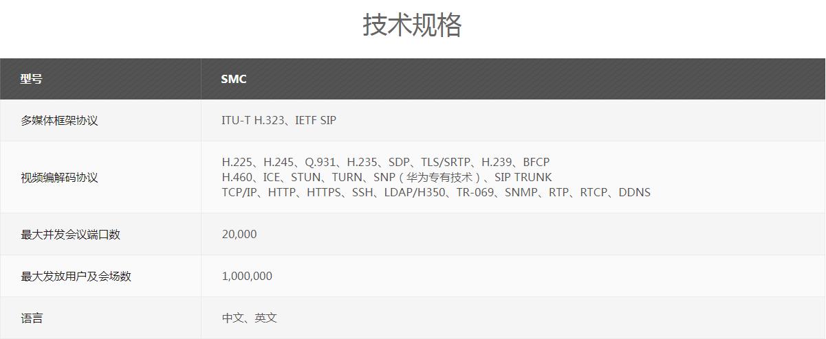 华为SMC新一代视讯业务管理系统,提供全网视讯会议设备统一管理、媒体资源统一调度、简单易用的会管会控和可视化运维管理功能。采用服务化架构,具备高性能、大容量、弹性伸缩的能力,可满足各种规模的视频会议需求。